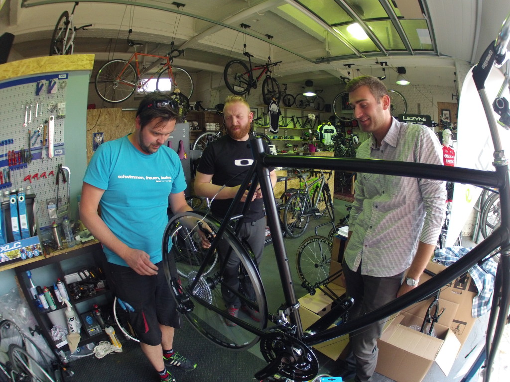 Después estas peripecias, empezamos a ensamblar las bicicletas con el equipo del Ravito