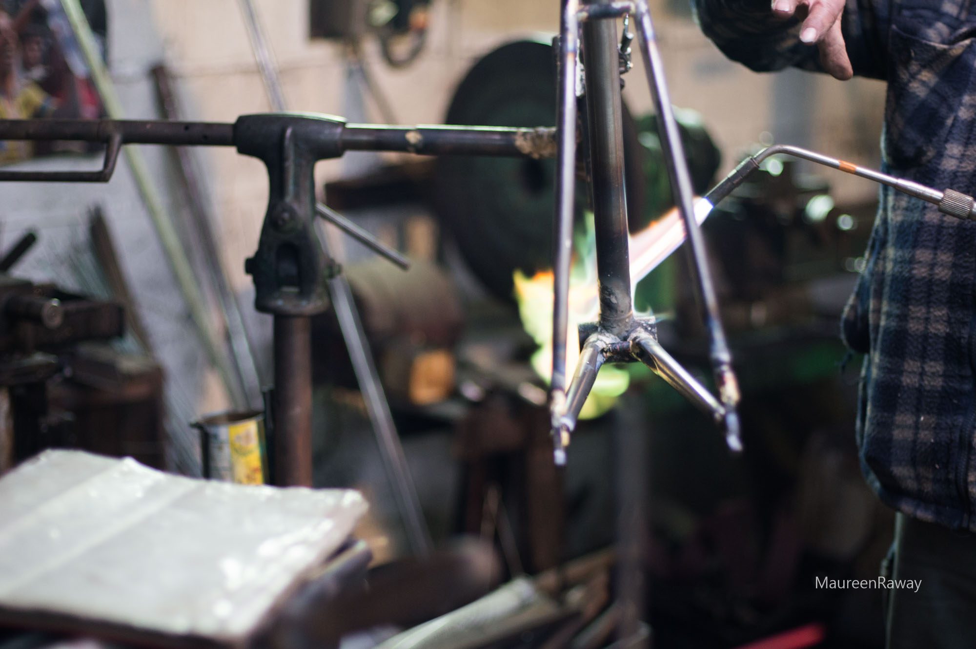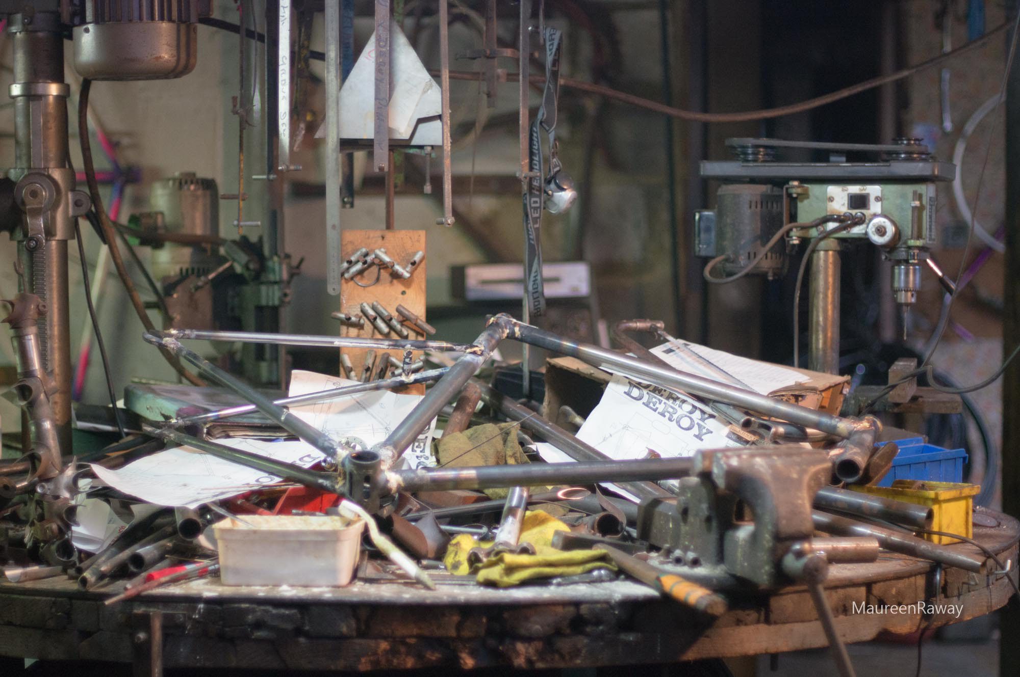 Dans son atelier, c’est la vraie caserne d’Ali baba. Il y a des centaines de tubes pour cadres, des clés vélos et des machines éparpillées aux quatre coins de l’atelier. Bref, cette pièce à elle seule, est une réelle exposition